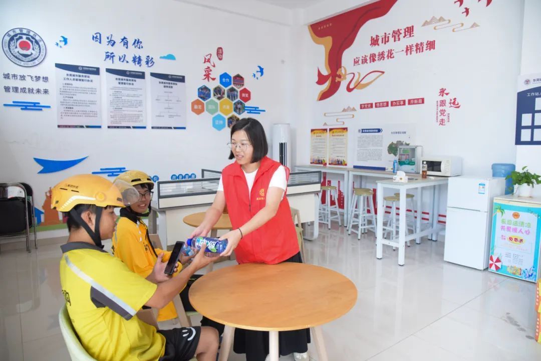在爱心驿站内,空调、饮水机、急救箱等设施一应俱全,还配备了防蚊花露水、藿香正气水、风油精等。清溪镇总工会工作人员表示,驿站随时欢迎有需要的户外劳动者进来歇歇脚、避避暑。